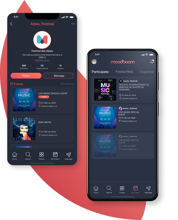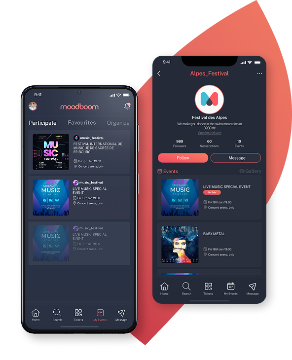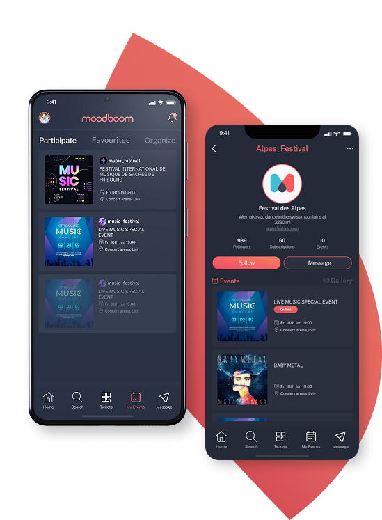 moodboom permet aux artistes de centraliser leurs dates, de valoriser leurs performances et de créer un lien direct avec leur public. Partage des moments exclusifs, des souvenirs de scène et des messages personnels autour de chaque événement, là où tes fans sont déjà présents.